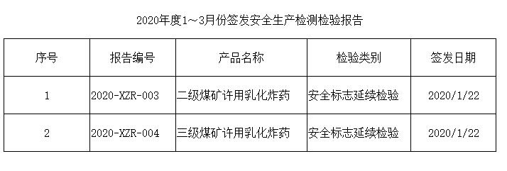安全生產(chǎn)檢測檢驗(yàn)報(bào)告信息(2020年度1~3月份)