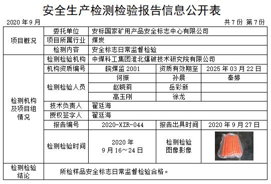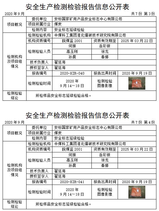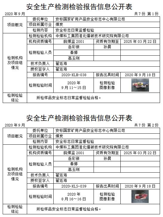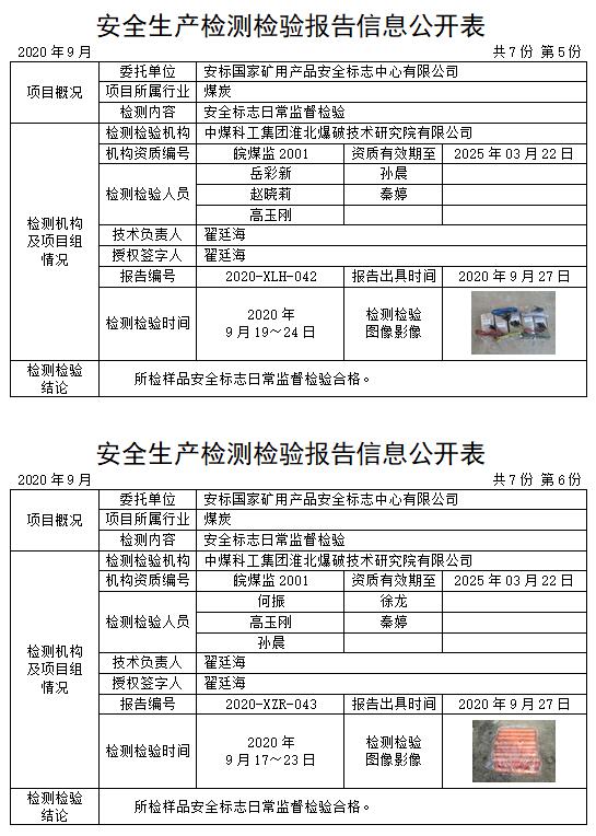 安全生產(chǎn)檢測(cè)檢驗(yàn)報(bào)告信息公開(kāi)表(2020年9月)