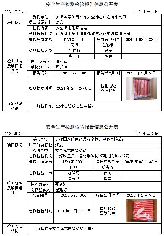 安全生產(chǎn)檢測檢驗(yàn)報(bào)告信息公開表(2021年2月)