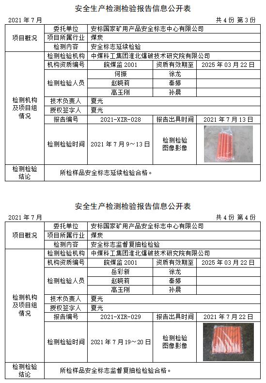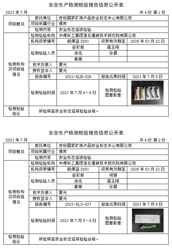 安全生產(chǎn)檢測檢驗報告信息公開表(2021年7月)