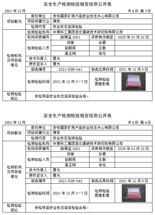 安全生產(chǎn)檢測(cè)檢驗(yàn)報(bào)告信息公開表(2021年12月)