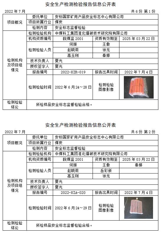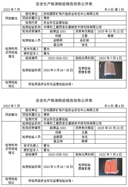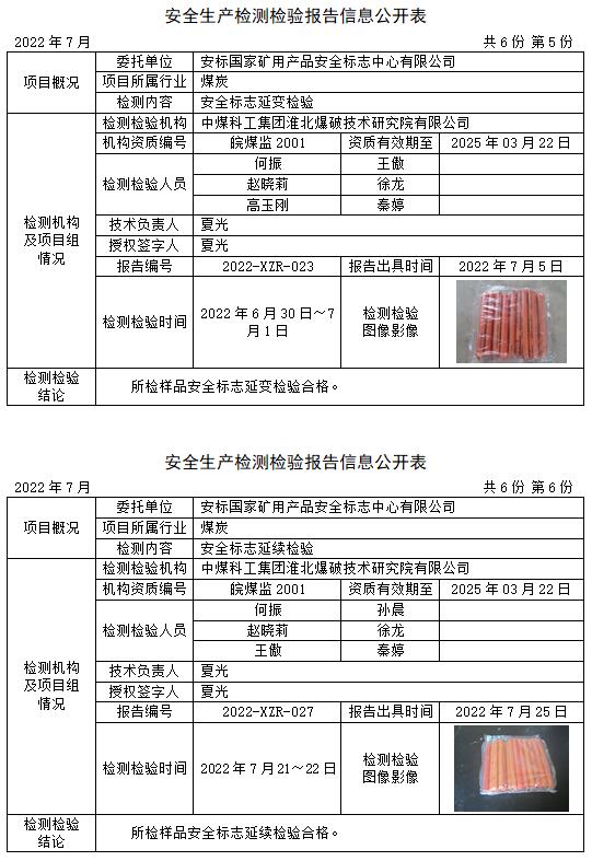 安全生產(chǎn)檢測(cè)檢驗(yàn)報(bào)告信息公開(kāi)表(2022年7月)