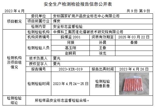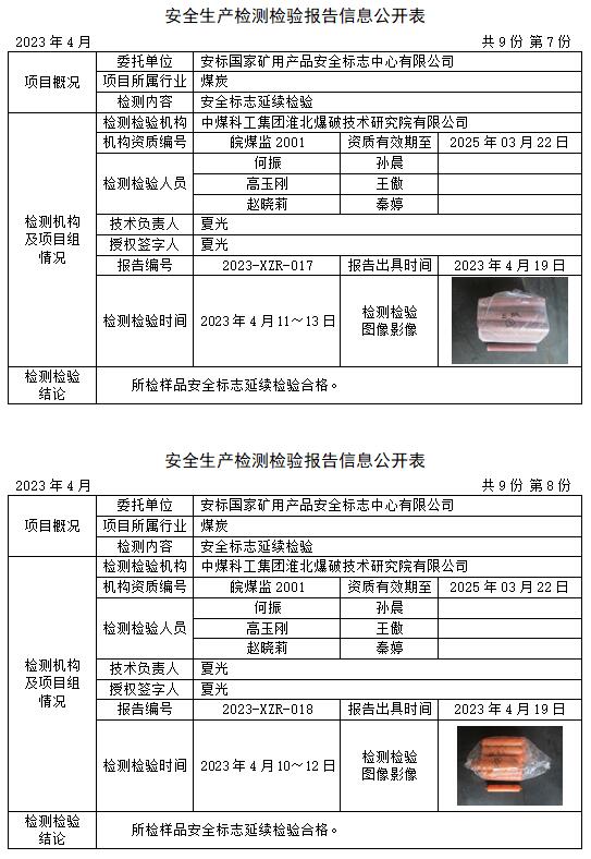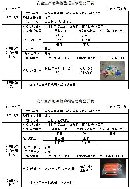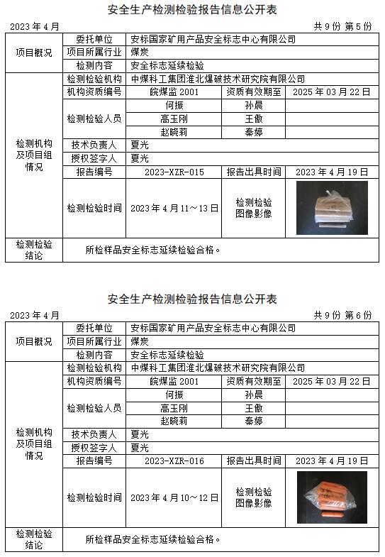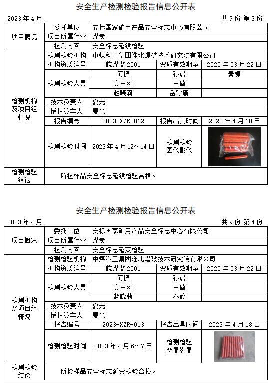 安全生產(chǎn)檢測檢驗報告信息公開表(2023年4月)