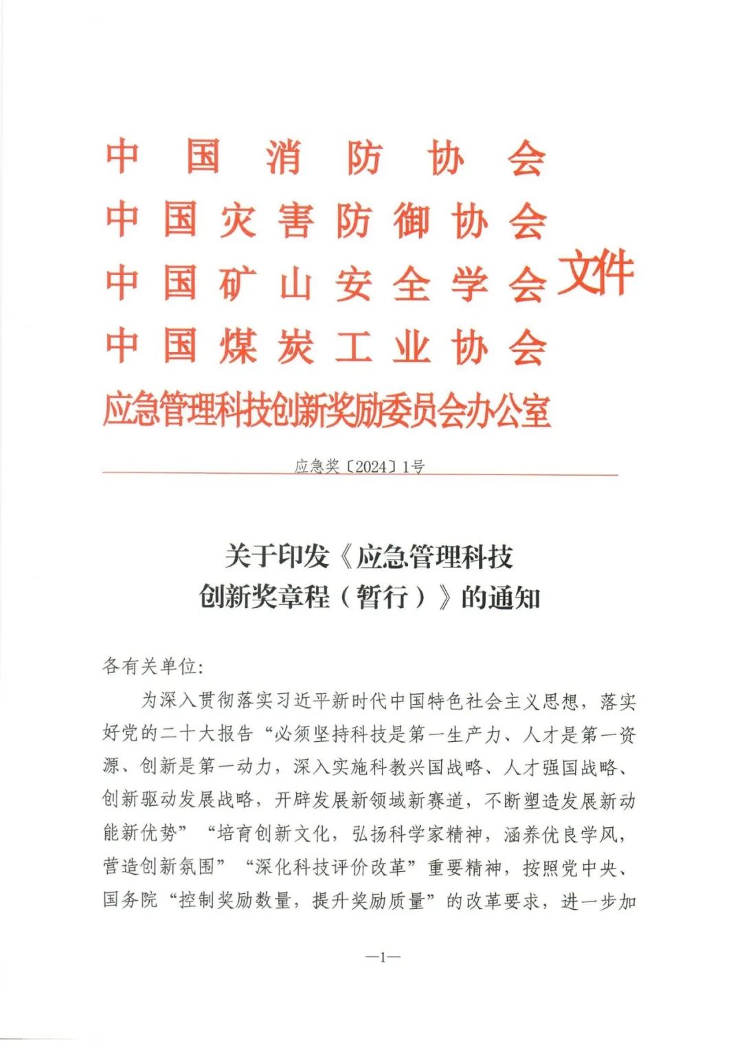 應(yīng)急管理科技創(chuàng)新獎設(shè)立