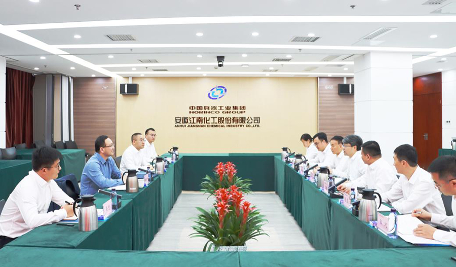 江南化工總裁代五四對陳金華院長一行到訪表示熱烈歡迎,介紹了江南化工改革歷程和業(yè)務(wù)發(fā)展情況,他表示,江南化工是民爆及新能源業(yè)務(wù)“雙核驅(qū)動”的上市公司,是兵器工業(yè)集團(tuán)打造國家民爆現(xiàn)代產(chǎn)業(yè)鏈“鏈長”的核心單位,并對爆破院長期以來對江南化工的鼎力支持表示認(rèn)同和感謝。