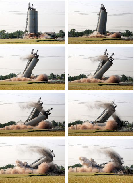 2017年5月21日下午4時(shí),隨著我院爆破公司張計(jì)璨副經(jīng)理發(fā)出“起爆”口令,“轟”的一聲,兩座高達(dá)40余米的石灰窯體按設(shè)計(jì)方向倒塌。這標(biāo)志著由我院爆破公司承擔(dān)的石灰窯體爆破拆除工程成功完成。